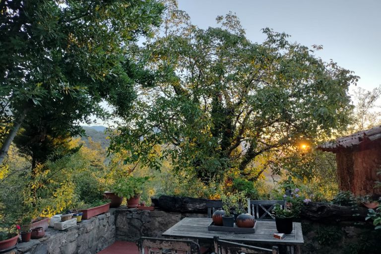 Un espacio exterior para reunirse y descansar rodeado de naturaleza, disfrutando del ambiente tranquilo del Pirineo de Girona.