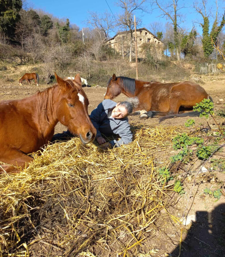 Meditar entre cavalls en plena natura